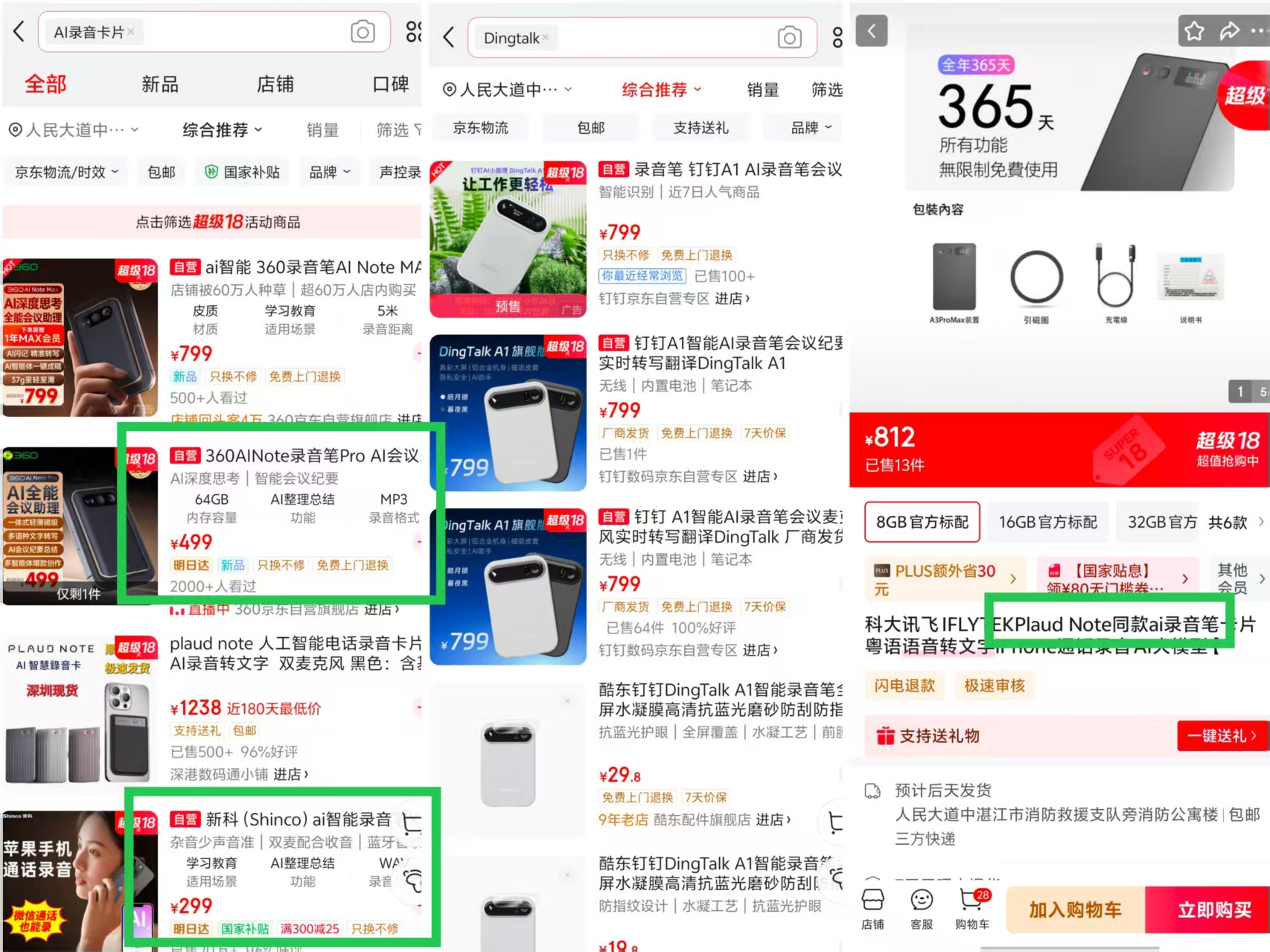 时代周报在电商平台搜索发现,360、科大讯飞也已推出类似产品。科大讯飞的商品介绍甚至直接打出“PlaudNote同款”,并称365天所有功能无限制免费使用。而PlaudNote也正从海外杀回,争夺国内市场,它在京东定价1238元,与海外的179美元(约合人民币1300元)基本持平。